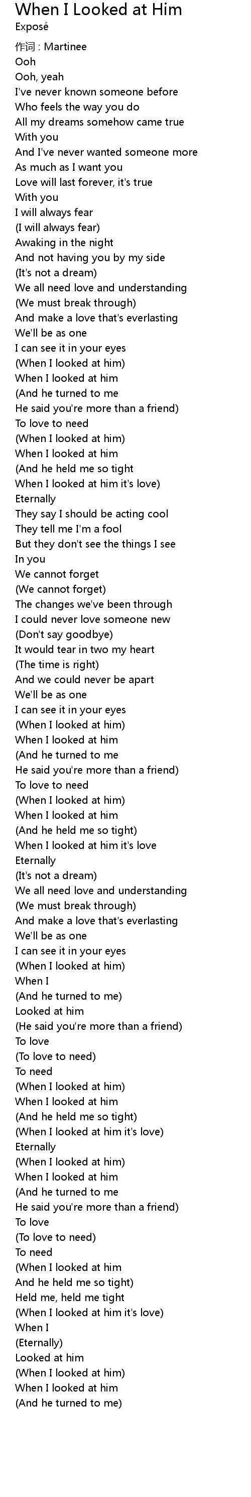 | Song | When I Looked at Him |