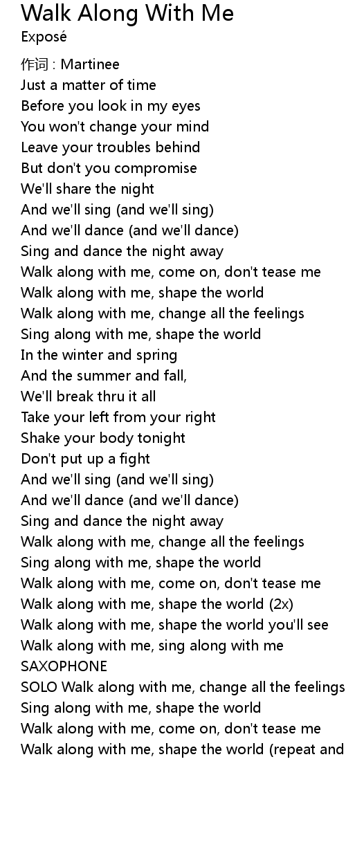 | Walk along with me, sing along with me | |