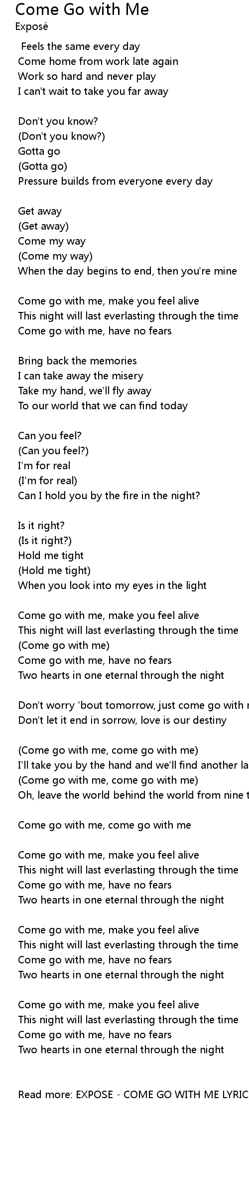 | Read more: EXPOSE - COME GO WITH ME LYRICS |