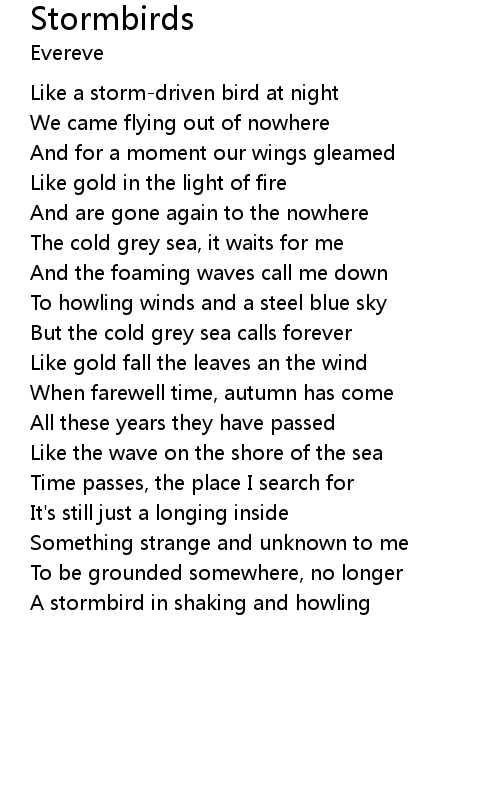 Like a storm-driven bird at night |