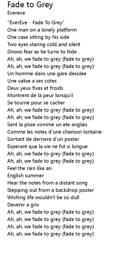 | Ah, ah, we fade to grey (fade to grey) | |