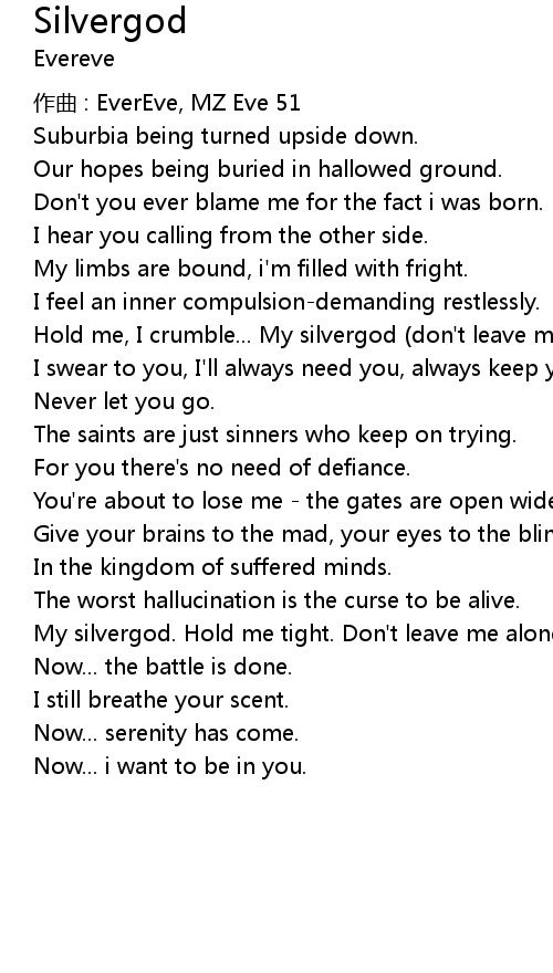 | My silvergod. Hold me tight. Don' t leave me alone. | |