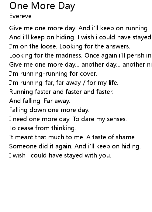 | Give me one more day. And i'll keep on running. | |