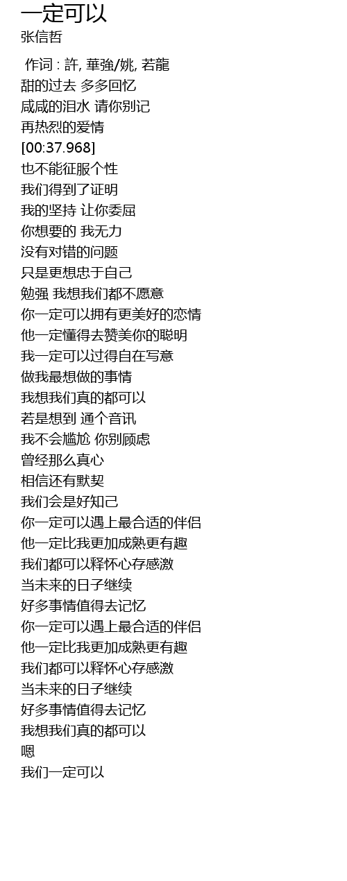 | [01:39.428] | wǒ xiǎng wǒ men zhēn de dōu kě yǐ |