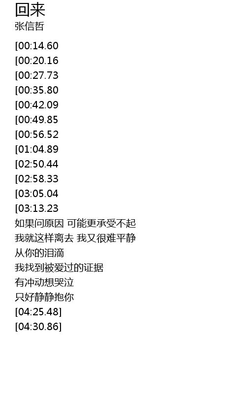 | [03:38.75][03:05.04][01:26.01] | ni de xin hui bu qu le dui bu dui |