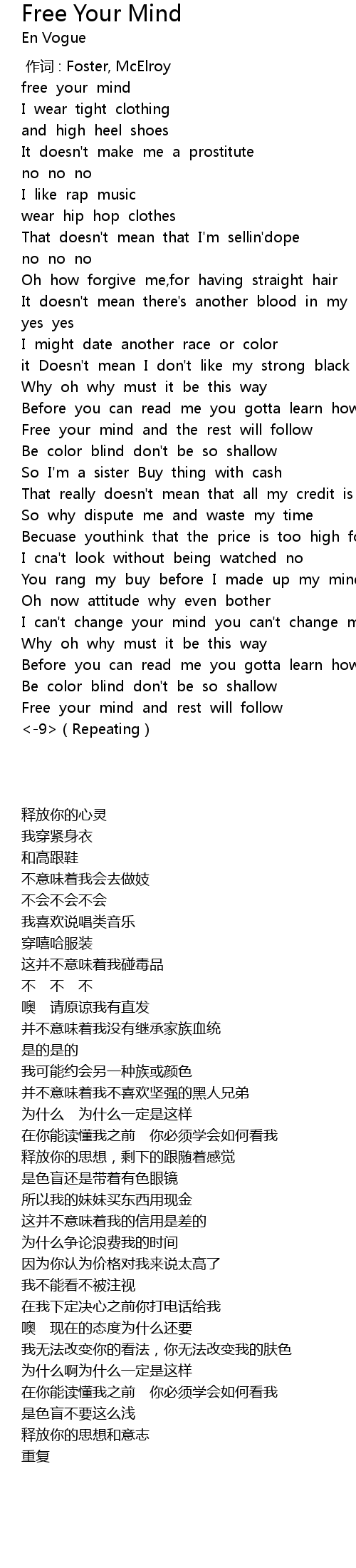 | [00:46.87] | it Doesn' t mean I don' t like my strong black brothers |