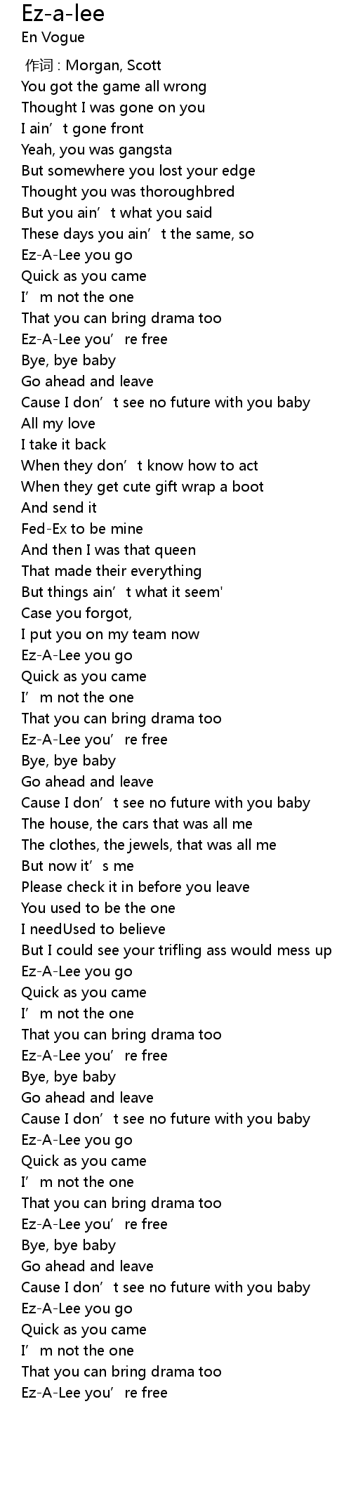 | [01:37.18] | Cause I don' t see no future with you baby |