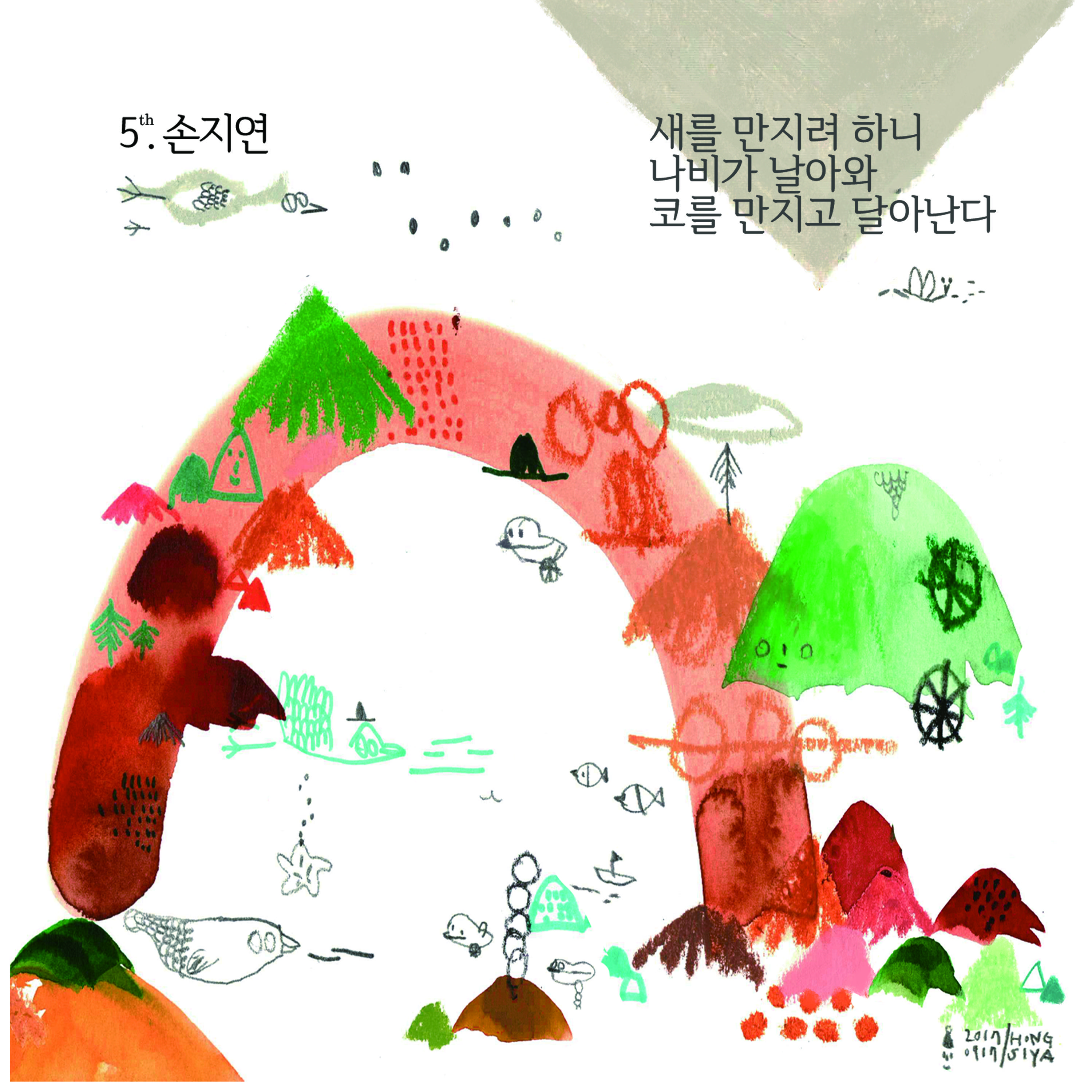 새를 만지려 하니 나비가 날아와 코를 만지고 달아난다