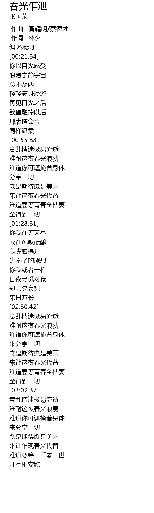 | [00:00.00] | 作曲 : 黃耀明/蔡德才 |