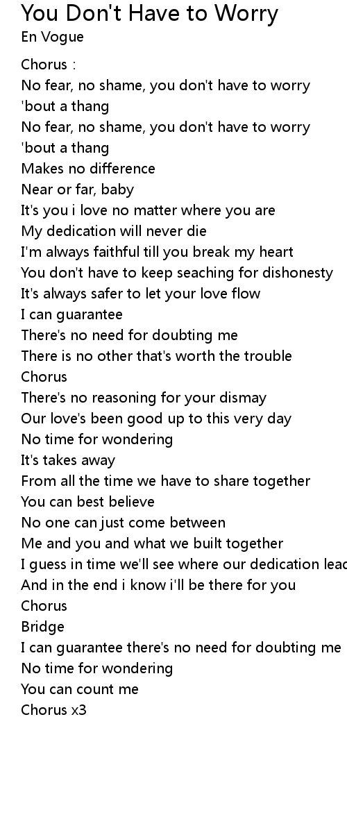 | Song | You Don't Have to Worry |