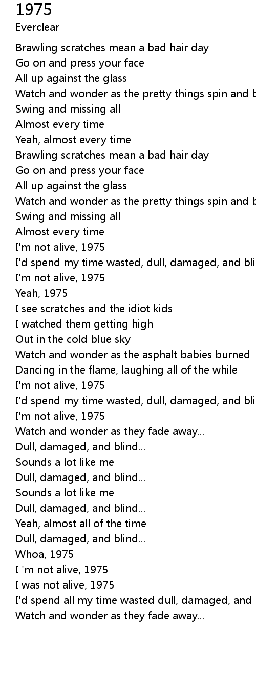 I'd spend all my time wasted dull, damaged, and blind 1975 |