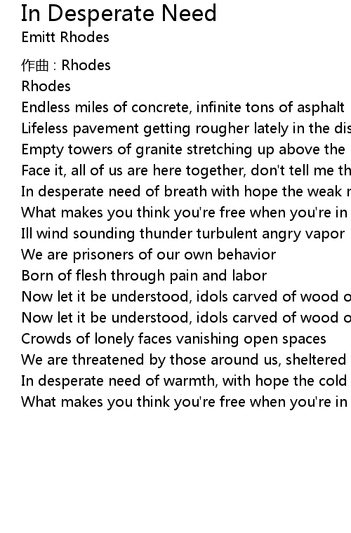 | What makes you think you' re free when you' re in desperate need? | |