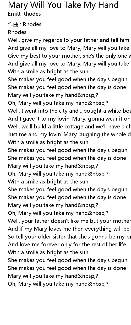 | Oh, Mary will you take my hand nbsp? |