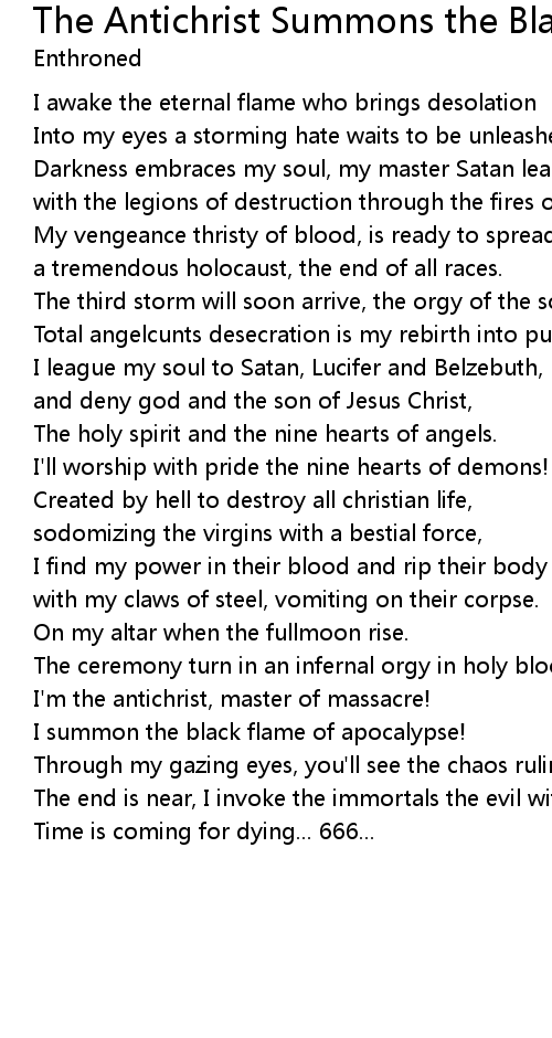 Darkness embraces my soul, my master Satan lead me |