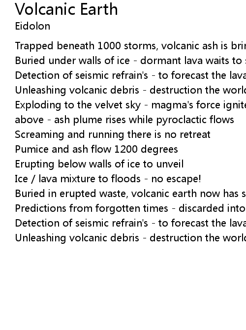 Exploding to the velvet sky - magma's force ignites volcanic plight 40,000 feet above - ash plume rises while pyroclactic flows |