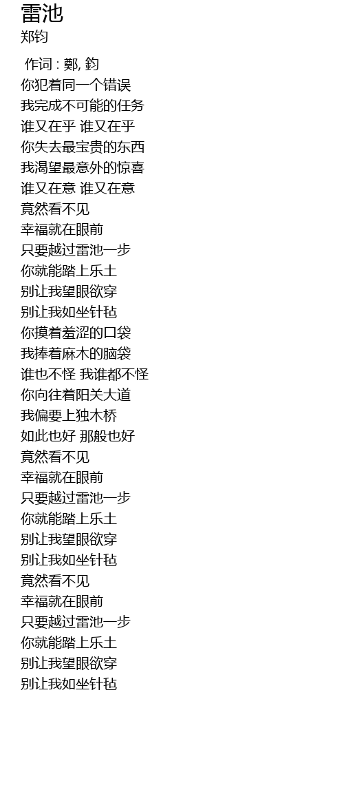 | [00:47.729] | zhǐ yào yuè guò léi chí yī bù |
