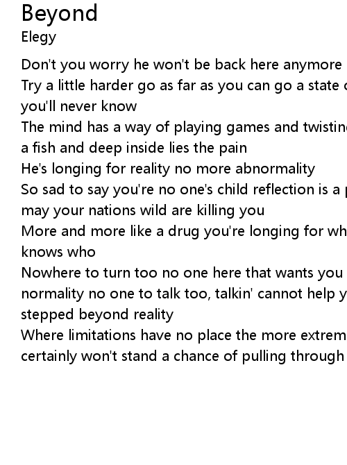 Nowhere to turn too no one here that wants you stay far away now way beyond normality no one to talk too, talkin' cannot help you stay far away now you've stepped beyond reality