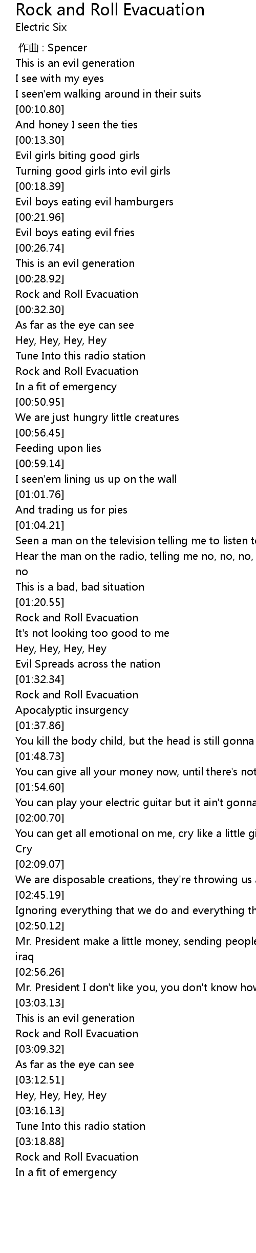 | [02:58.76] | Mr. President I don' t like you, you don' t know how to rock |
