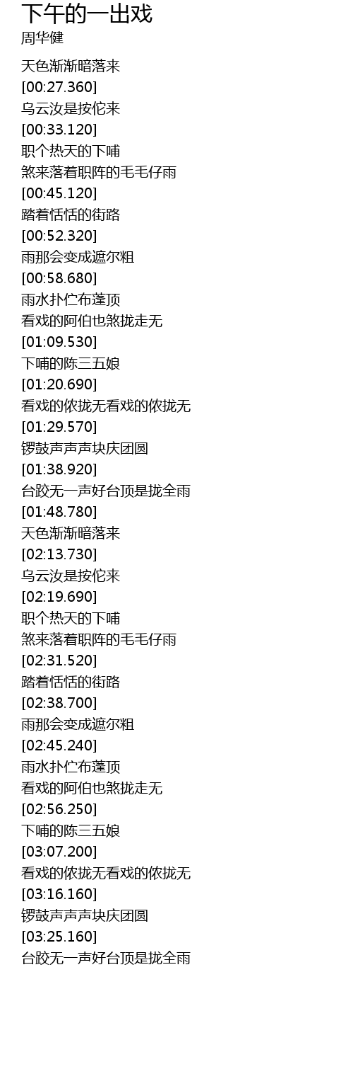 | [03:26.110] | 台跤无一声好台顶是拢全雨 |