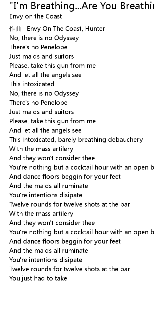 | Song | "I'm Breathing...Are You Breathing Too?" |