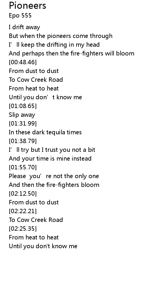 | [00:26.50] | But when the pioneers come through |