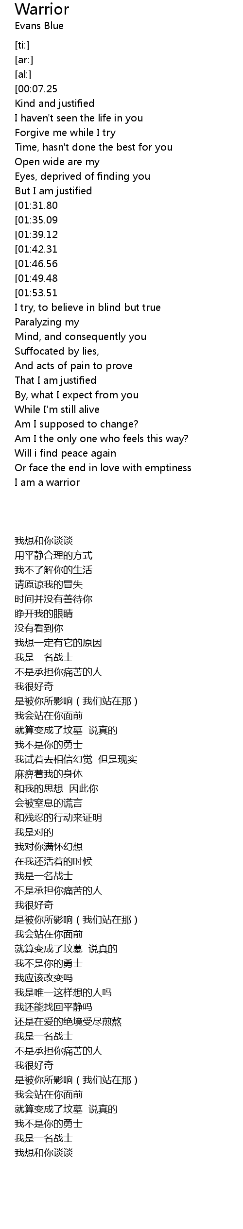 And I am a warrior |