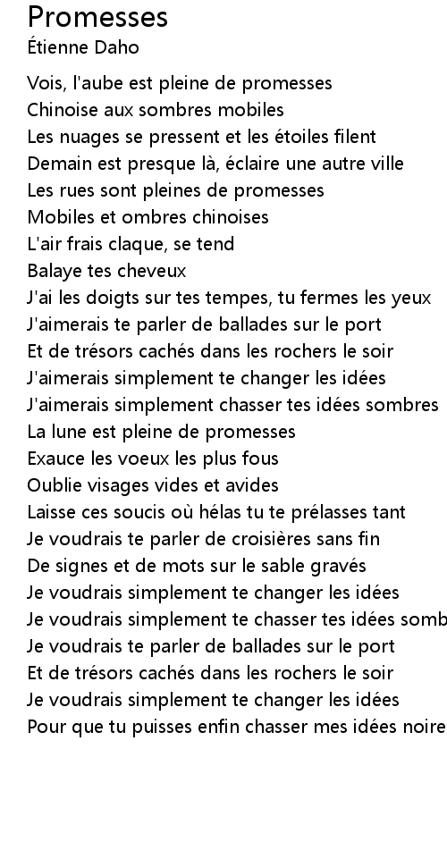 | Laisse ces soucis ou he las tu te pre lasses tant | |