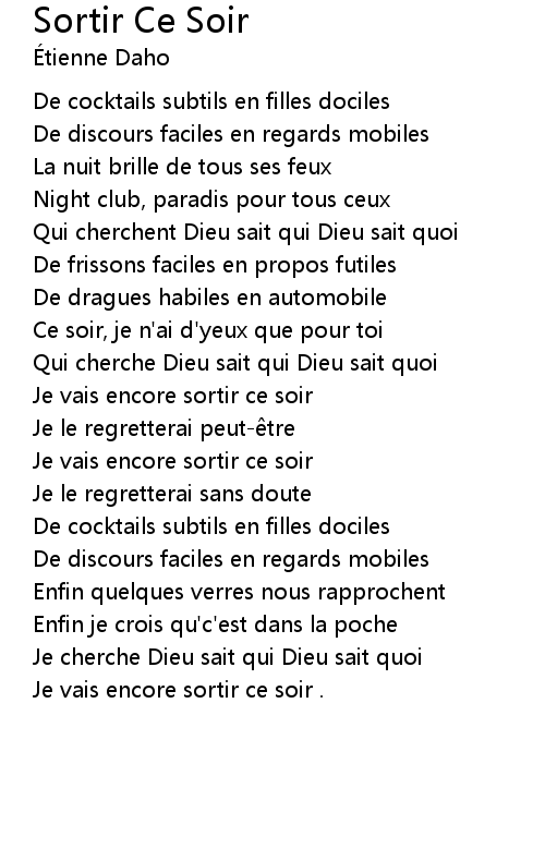 | Song | Sortir Ce Soir |