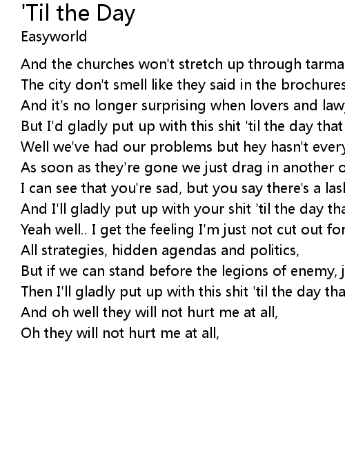 Then I'll gladly put up with this shit 'til the day that I die, |