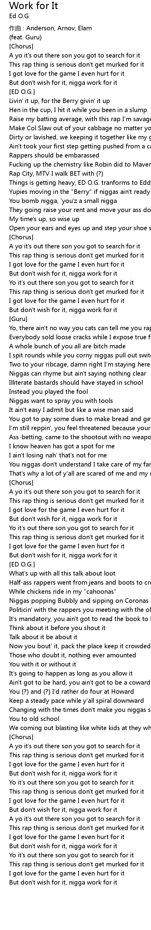 | But don' t wish for it, nigga work for it | |