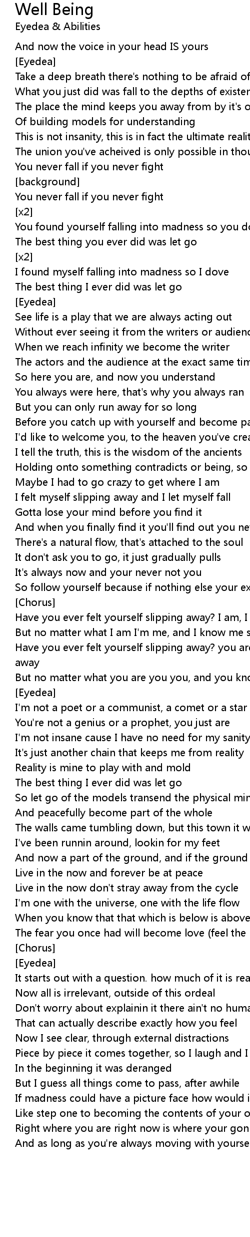 Have you ever felt yourself slipping away? I am, I mean, I was slipping away |