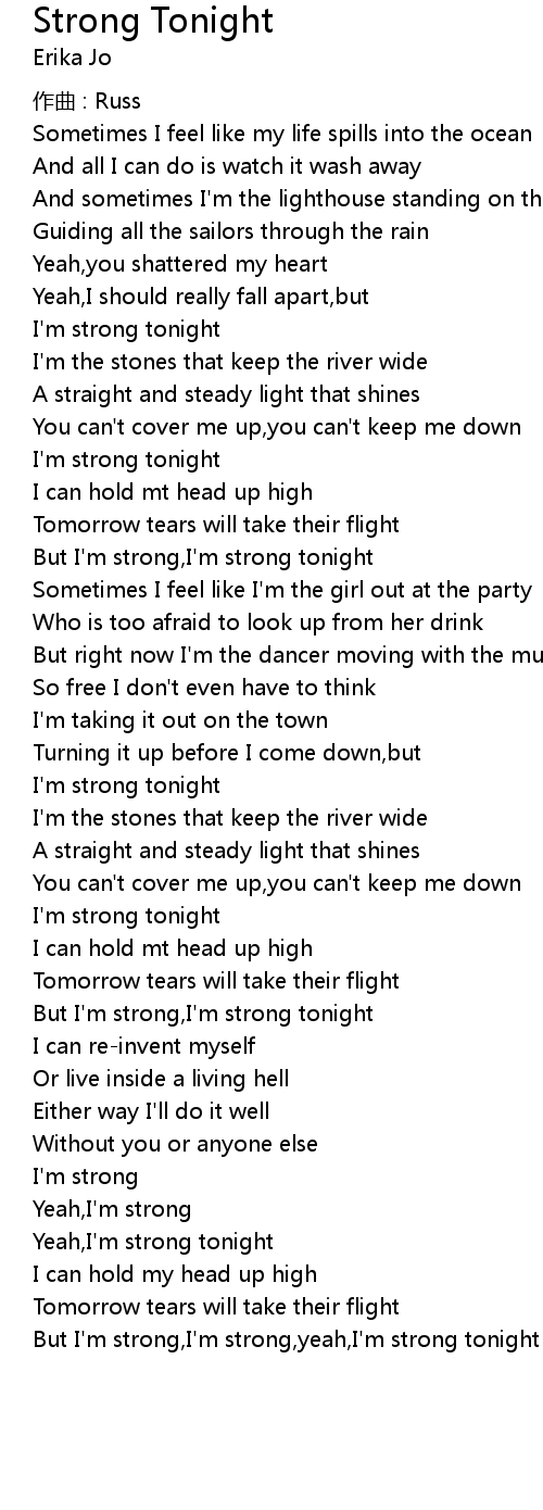 | But I'm strong,I'm strong,yeah,I'm strong tonight |