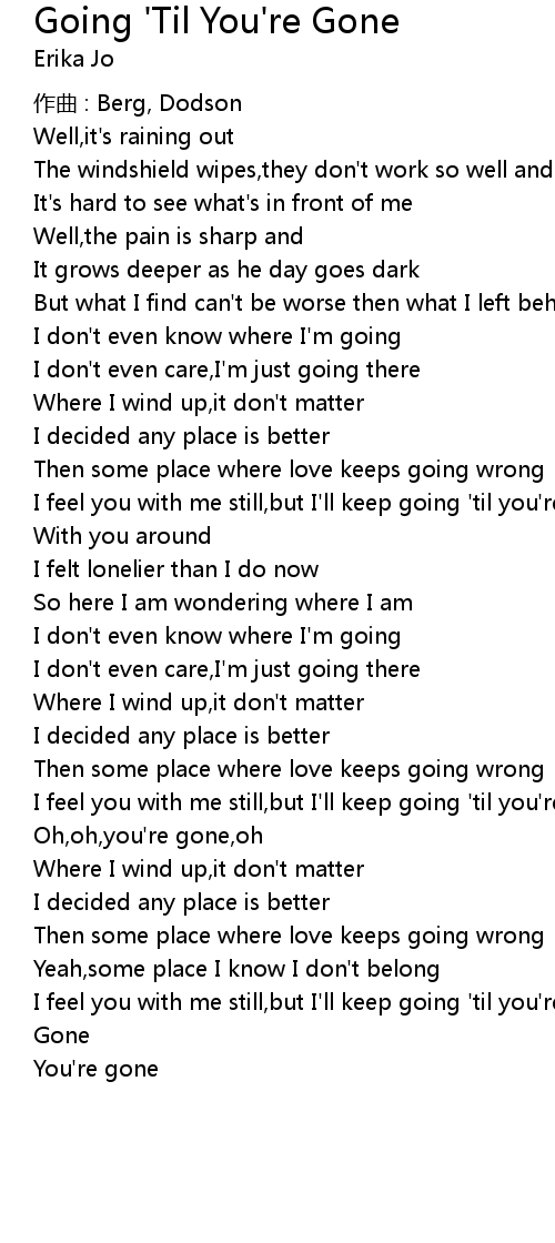 | I feel you with me still, but I' ll keep going ' til you' re gone | |