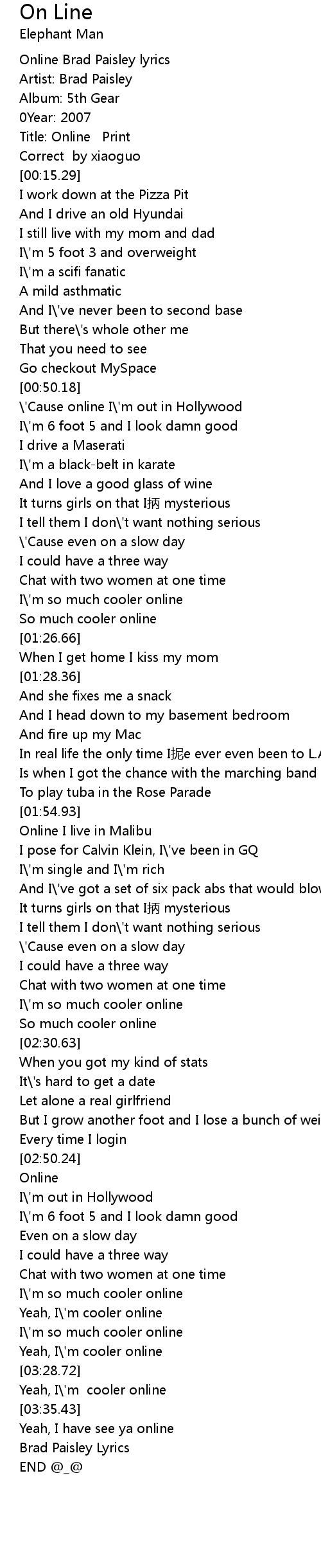 | [03:46.55] | Brad Paisley Lyrics |