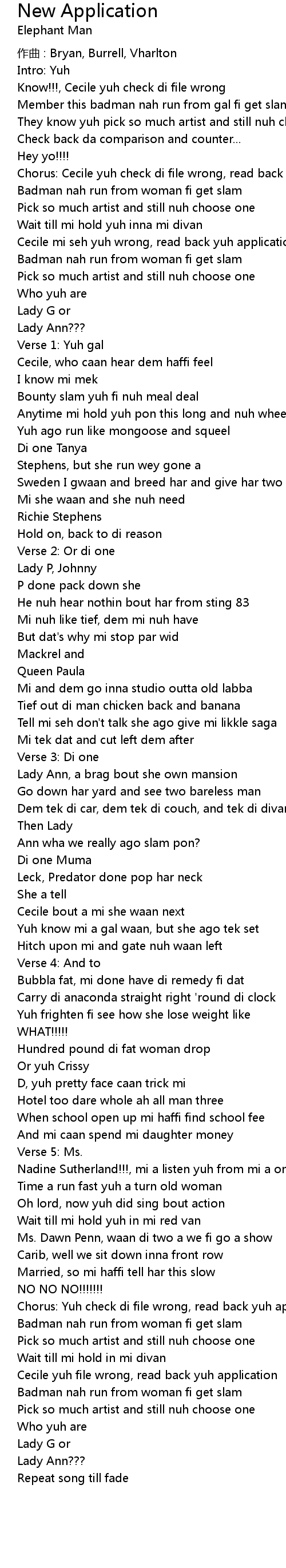 | Chorus: Yuh check di file wrong, read back yuh application | |