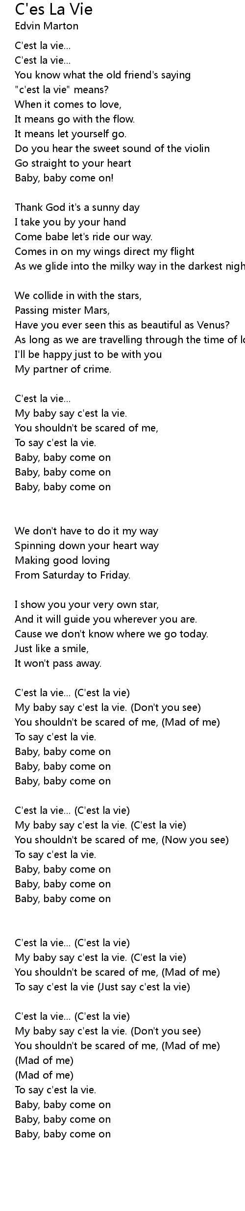 My baby say c'est la vie. (Don't you see) |