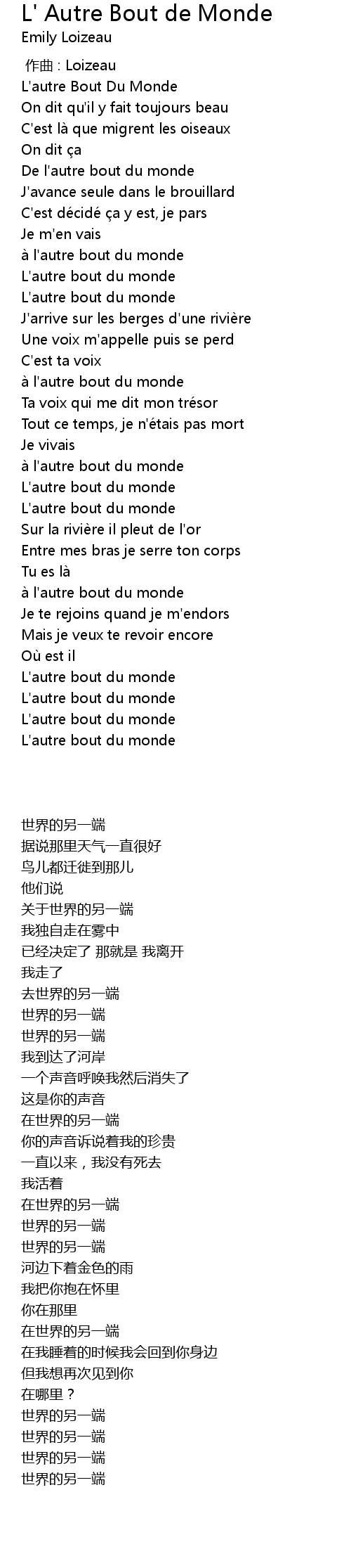| [00:19.46] | C'est là que migrent les oiseaux |