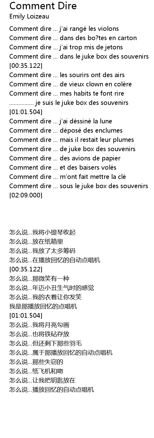 | [00:28.017] | Comment dire ... dans le juke box des souvenirs |