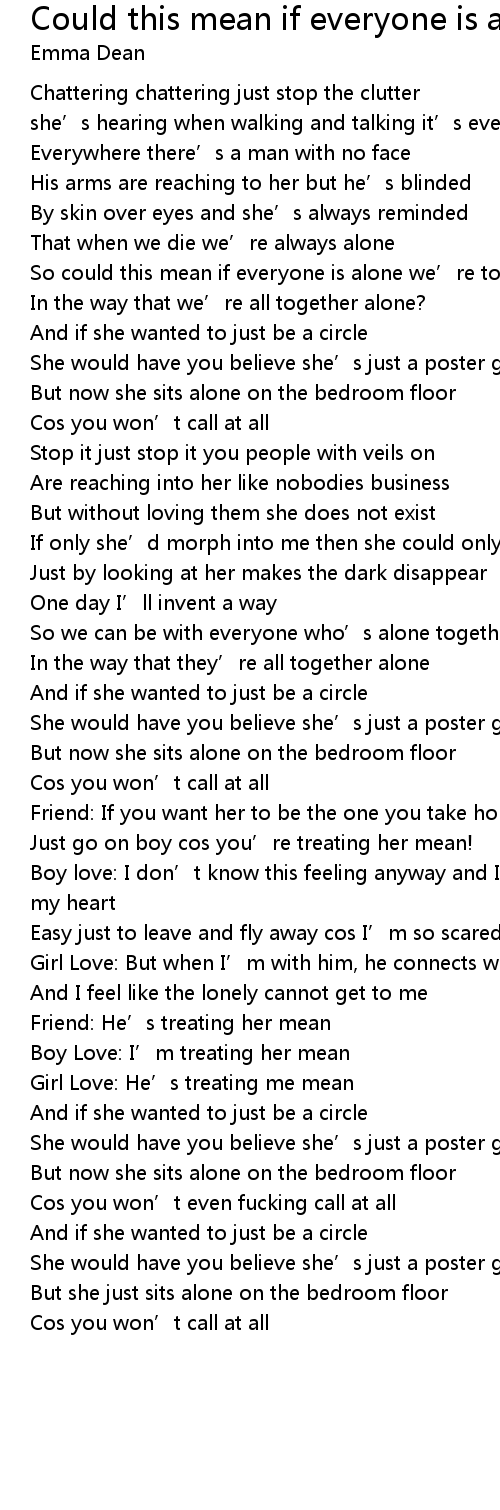 | So could this mean if everyone is alone we' re together? | |
