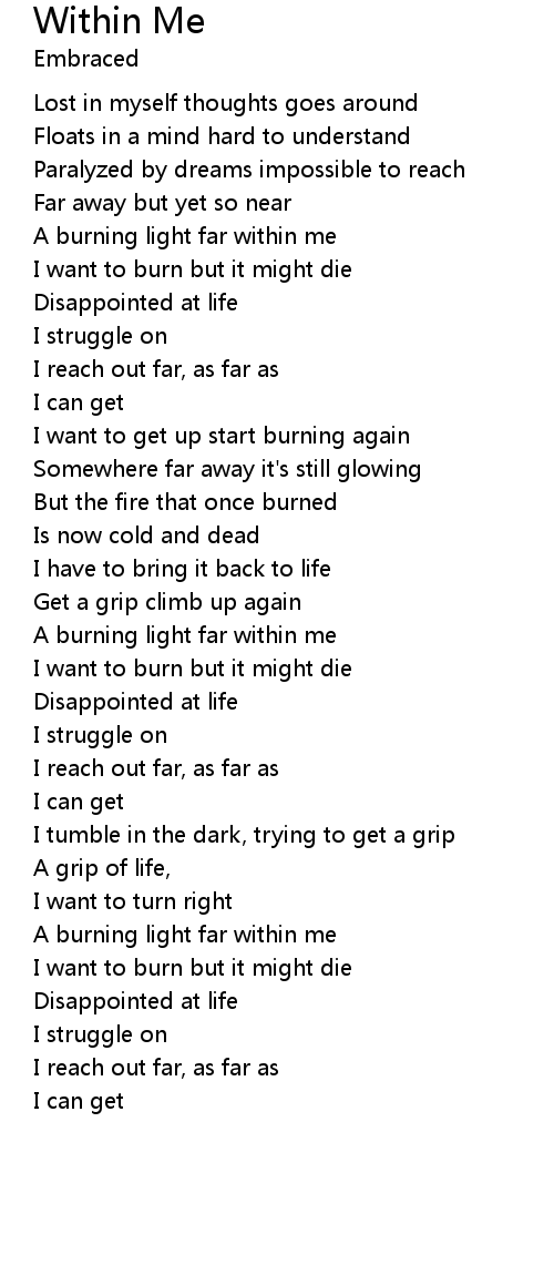 | A burning light far within me | |