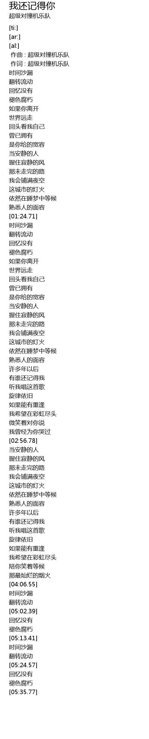| [02:35.46] | yǒu shuí hái jì de wǒ |