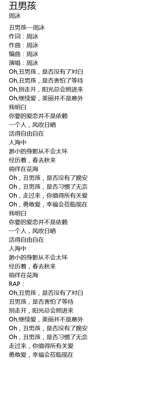 | [02:41.78] | Oh,丑男孩,是否习惯了无奈 |