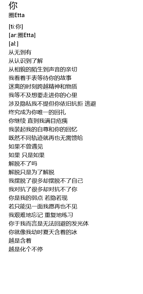 | [00:22.47] | 涉及隐私我不提但你依旧抗拒 逃避 |