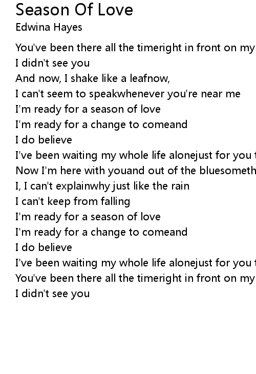 I'm ready for a season of love |