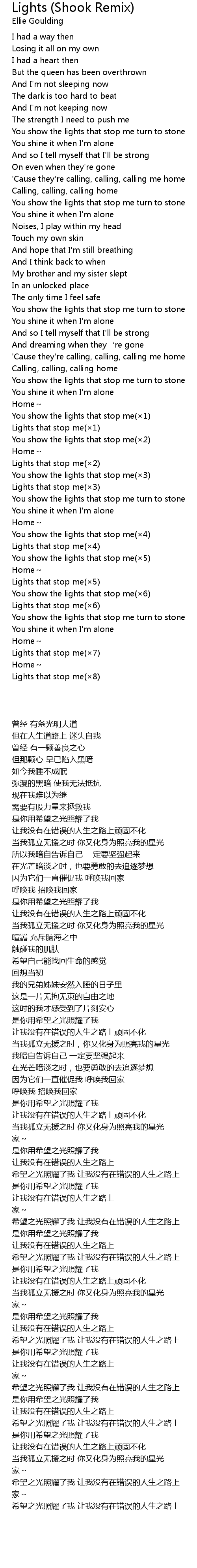 | [03:33.99] | Lights that stop me(×8) |