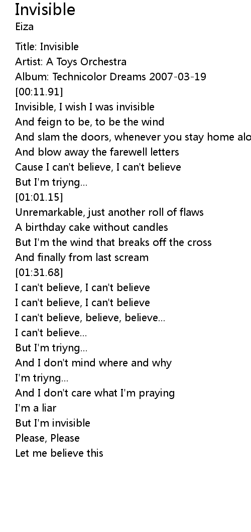 Invisible, I wish I was invisible |