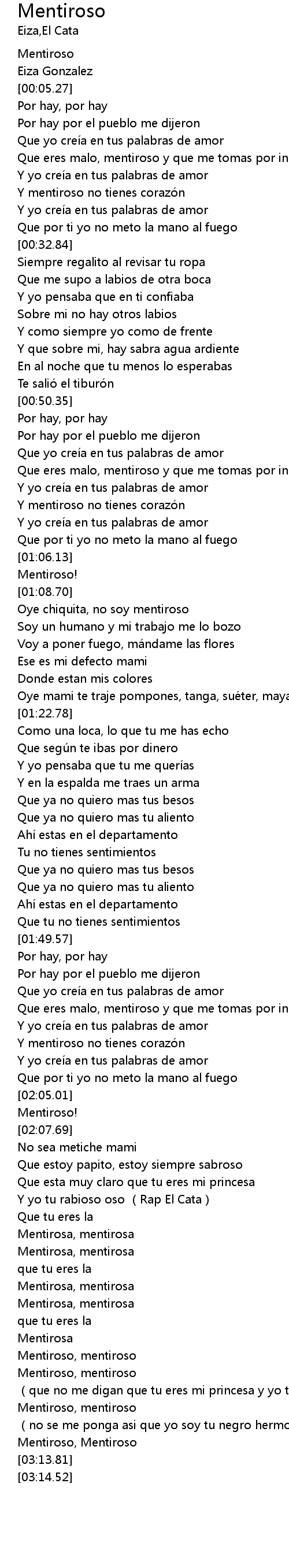 | [02:56.60] | Mentiroso, Mentiroso |