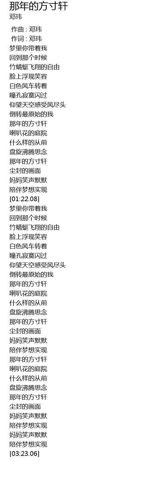 | [00:51.71] | nà nián de fāng cùn xuān |