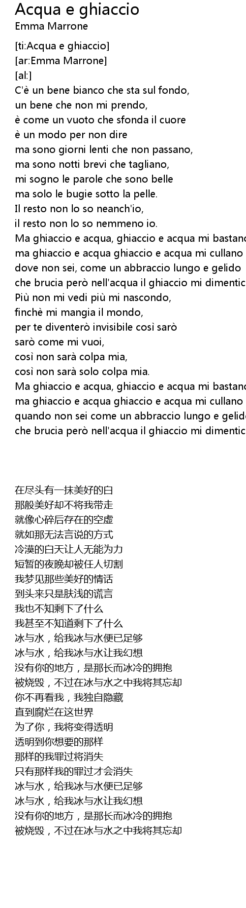 | [02:53.62] | Ma ghiaccio e acqua, ghiaccio e acqua mi bastano, |