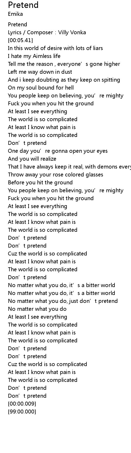 | [03:35.34] | Don' t pretend |